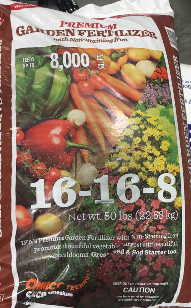 There are three numbers in bold on the front of the fertilizer bags. The first number is nitrogen, the second number is phosphorus, and the third number is potash.