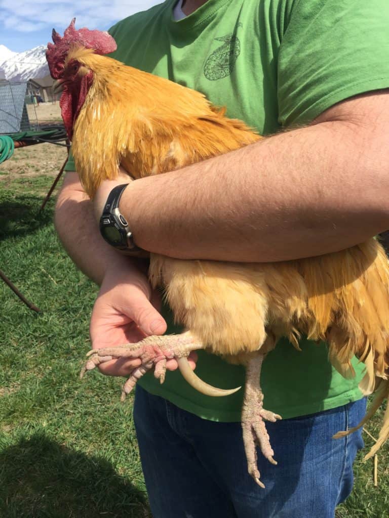 Second, a rooster uses his spurs during mating. As a rooster mates with a hen, he climbs onto her back, grasping for balance with his claws and spur, and her neck feathers with his beak. If a rooster’s spurs are excessively long or curved, they can cause harm to the hen’s back and wings during mating. This is another good reason to keep your roosters spurs in check.