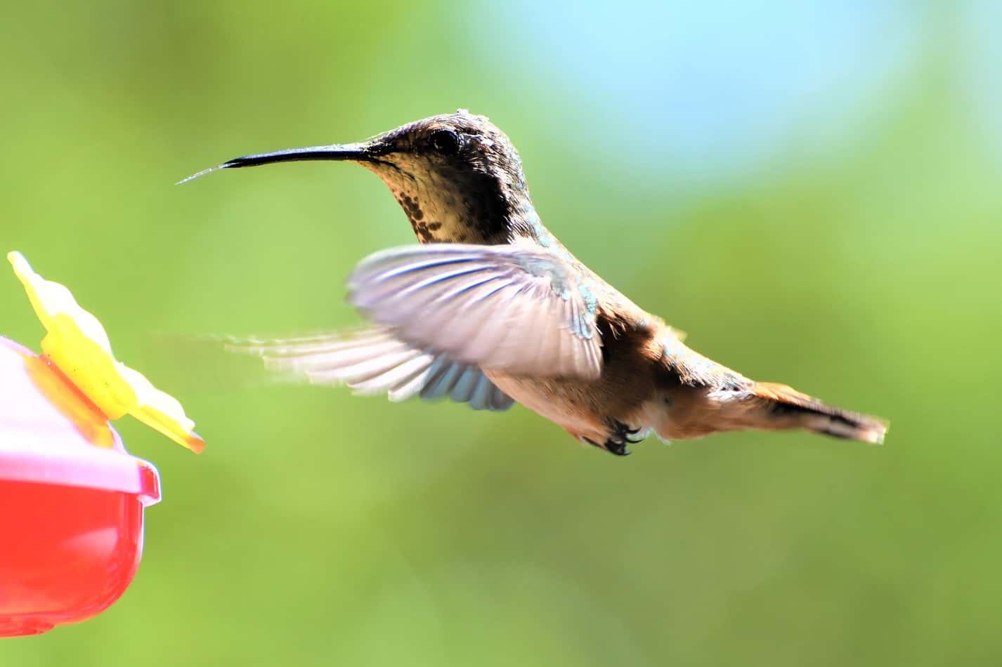 There are plenty of choices when it comes to buying bird feeders. If you are interested in creating an environment that consistently attracts hummingbirds, you will want a sturdy model that is designed to withstand easy and often filling and cleaning. The substitute hummingbird feeder water will attract other bugs and insects, so you will want to keep it clean, often requiring daily or alternate day cleaning. We particularly prefer a feeder style that has the nectar ports above the liquid reservoir. This will avoid dripping, which attracts bugs and ants. We recommend the Perky Pet feeder, found here. We highly recommend this model, or a similar make, as it has a moat that keeps ants out, holds up to 30 ounces of nectar, and is easy to fill and clean.